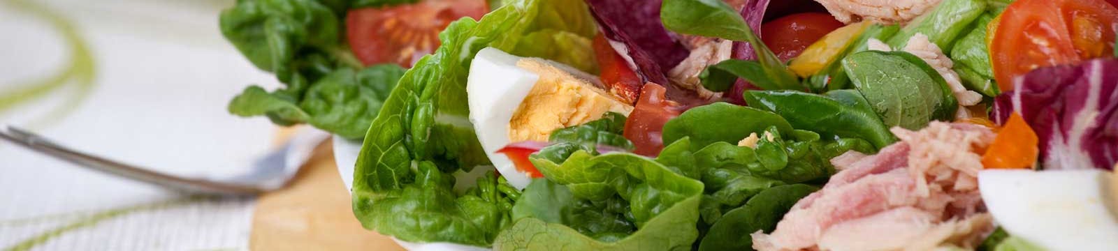 SAŁATKA TUNATUNCZYK, SER ŻÓŁTY, KUKURYDZA, OGOREK, CEBULA, FASOLA. MIX SAŁAT, SOS CZOSNKOWY